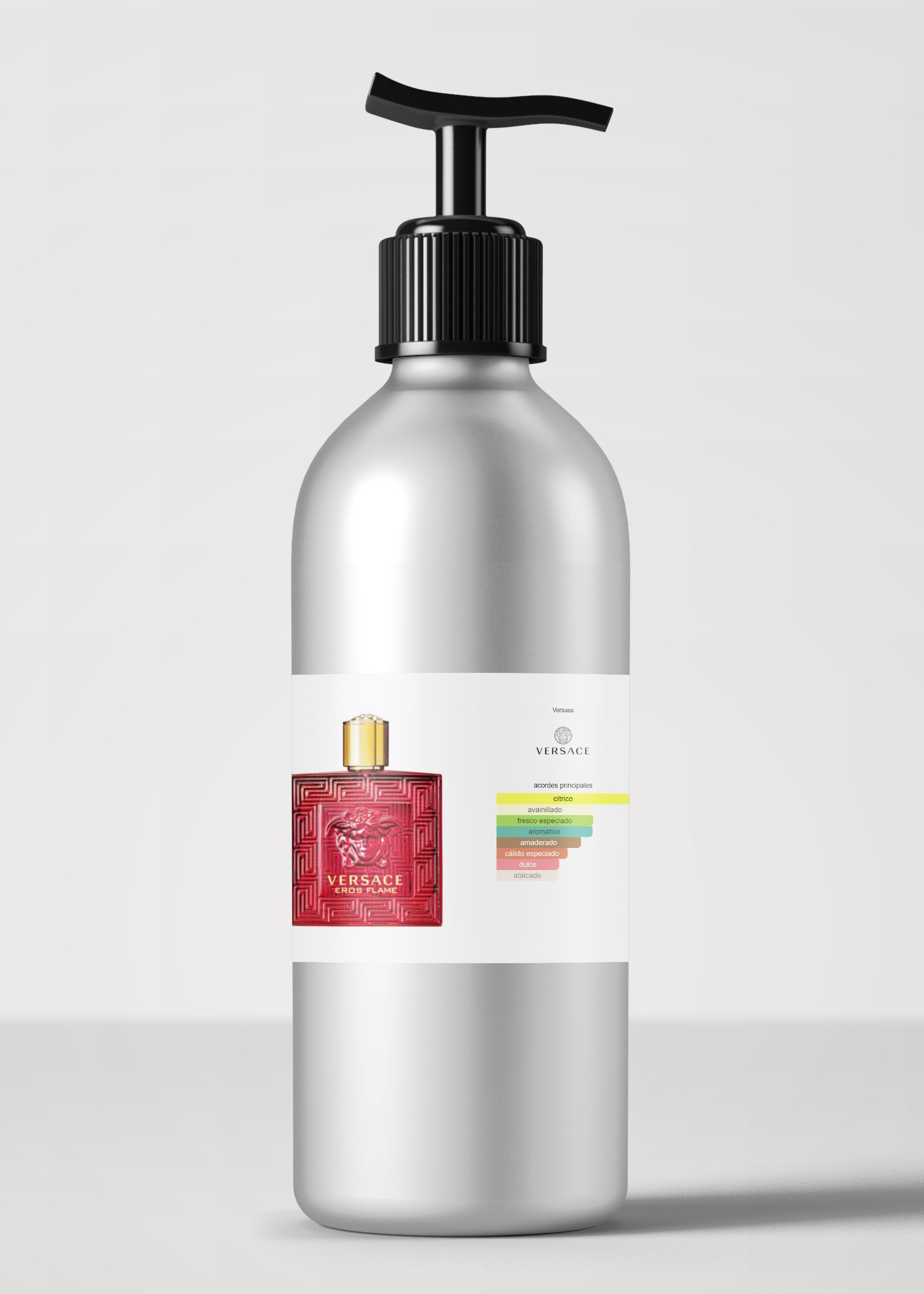 Eros Flame de Versace es una fragancia de la familia olfativa Amaderada Especiada para Hombres. Eros Flame se lanzó en 2018. La Nariz detrás de esta fragrancia es Olivier Pescheux. Las Notas de Salida son mandarina, pimienta de Madagascar, limón (lima ácida), Chinotto y romero; las Notas de Corazón son geranio, rosa y Pepperwood™; las Notas de Fondo son vainilla, haba tonka, sándalo, cedro de Texas, pachulí y musgo de roble