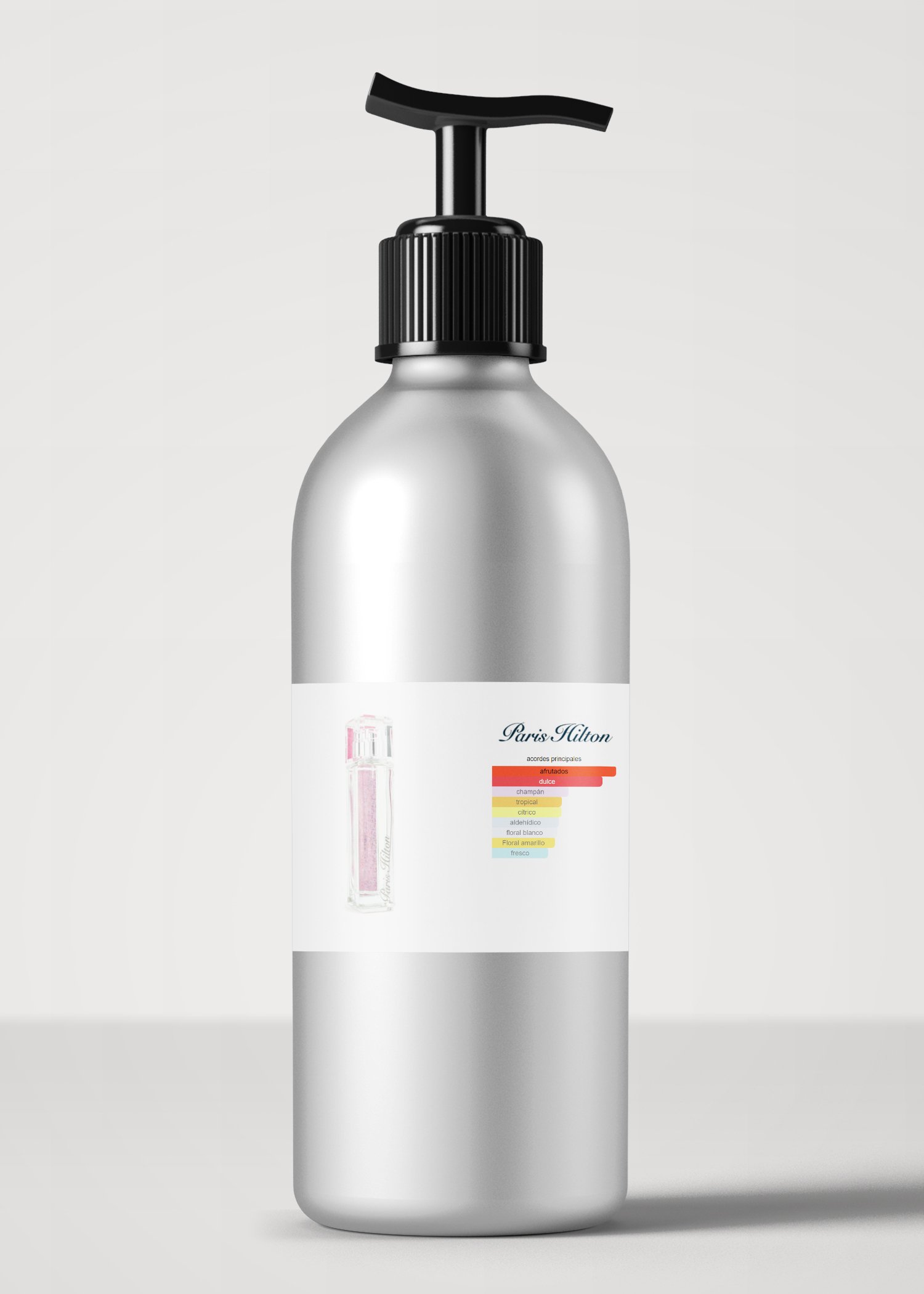 Heiress de Paris Hilton es una fragancia de la familia olfativa Floral Frutal para Mujeres. Heiress se lanzó en 2006. Heiress fue creada por Steve DeMercado y Fragrance Resources. Las Notas de Salida son champaña, maracuyá (fruta de la pasión), durazno (melocotón), naranja y mimosa; las Notas de Corazón son granadina, flor de tiaré, ylang-ylang, madreselva y jazmín de estrella; las Notas de Fondo son haba tonka, hojas de violeta y maderas blancas.