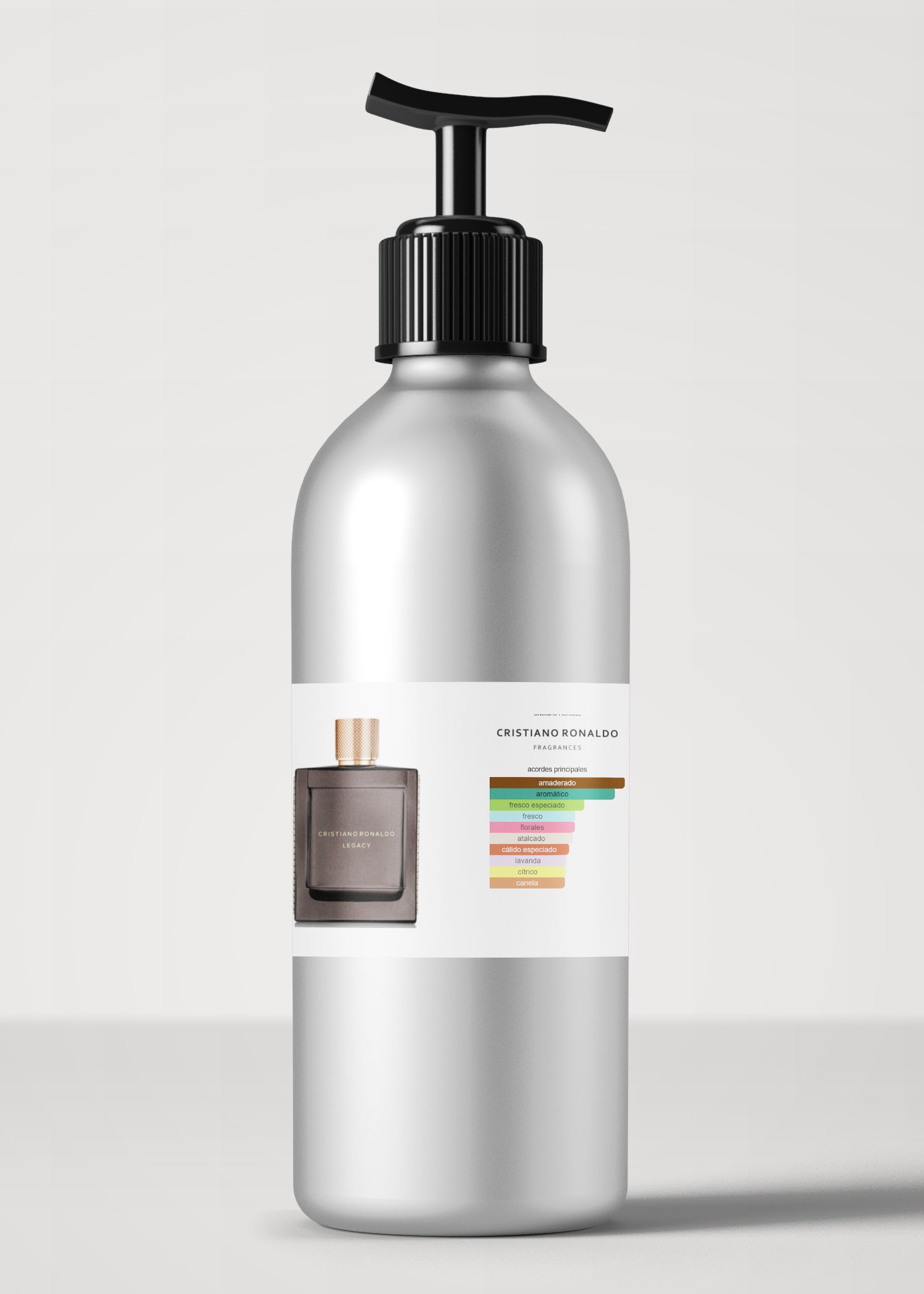 Legacy de Cristiano Ronaldo es una fragancia de la familia olfativa Amaderada Aromática para Hombres. Legacy se lanzó en 2015. Las Notas de Salida son manzana verde, lavanda, bergamota y canela; las Notas de Corazón son cedro, violeta, peonía, romero, salvia y raíz de lirio; las Notas de Fondo son ámbar gris, pachulí y vetiver.