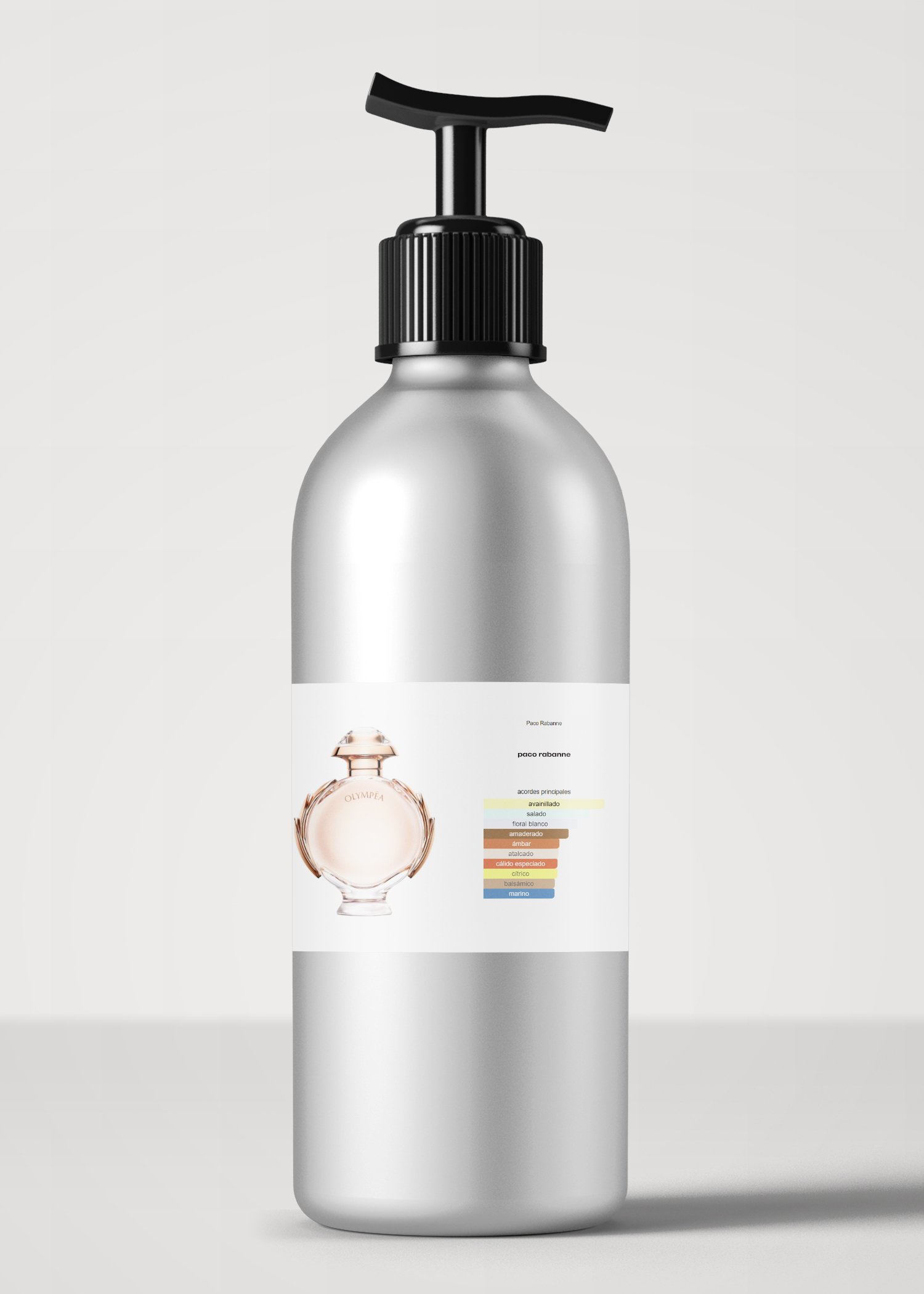 Olympéa de Rabanne es una fragancia de la familia olfativa Oriental Floral para Mujeres. Olympéa se lanzó en 2015. Olympéa fue creada por Loc Dong, Anne Flipo y Dominique Ropion. Las Notas de Salida son jazmín de agua, mandarina verde y flor de jengibre; las Notas de Corazón son vainilla y sal; las Notas de Fondo son madera de cachemira, ámbar gris y sándalo.