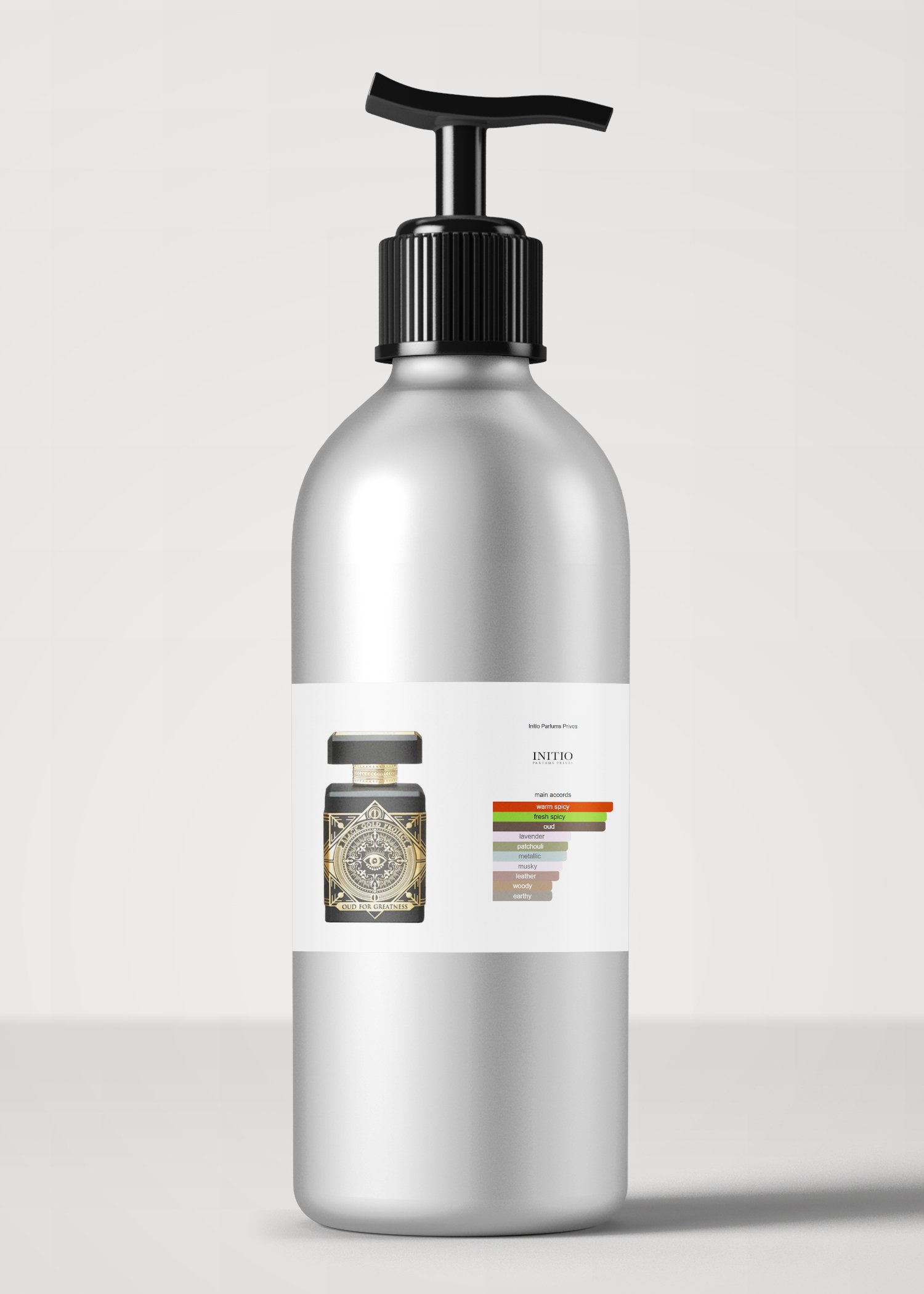 Oud for Greatness de Initio Parfums Prives es una fragancia de la familia olfativa para Hombres y Mujeres. Oud for Greatness se lanzó en 2018. Las Notas de Salida son azafrán, nuez moscada y lavanda; la Nota de Corazón es madera de oud; las Notas de Fondo son pachulí y almizcle.